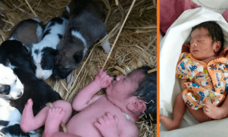 Abandoned Newborn Girl Saved By Puppies Cuddling Her To Keep Her Warm