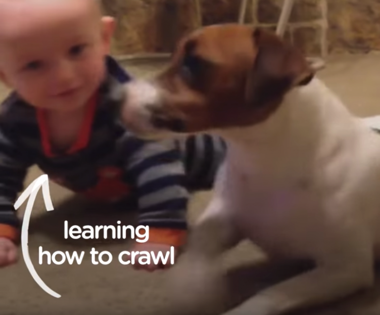 Pets are additionally impressive instructors. This handy pooch is showing his human sibling how to creep! It won’t be long until these 2 are running around as well as playing hide-and-seek together.