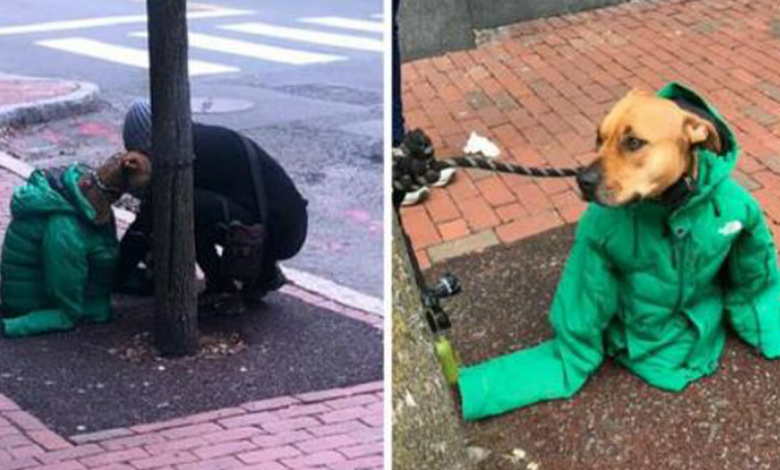 However the pet dog was visibly drinking from the cold weather … so the proprietor did something really thoughtful: she provided the pet dog her jacket!