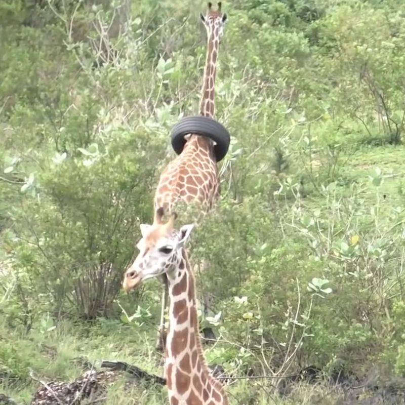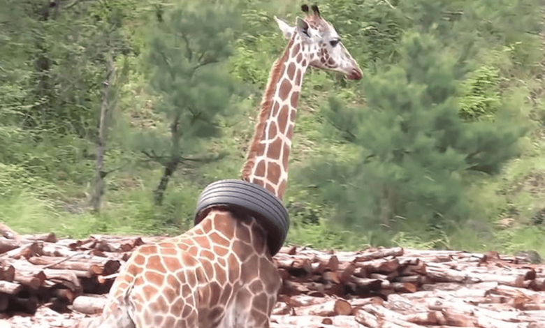 From the minute cams captured pictures of this wild giraffe, they might inform something was wrong. Somehow a tire had wrapped itself around the bad animal’s neck.
