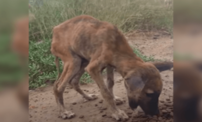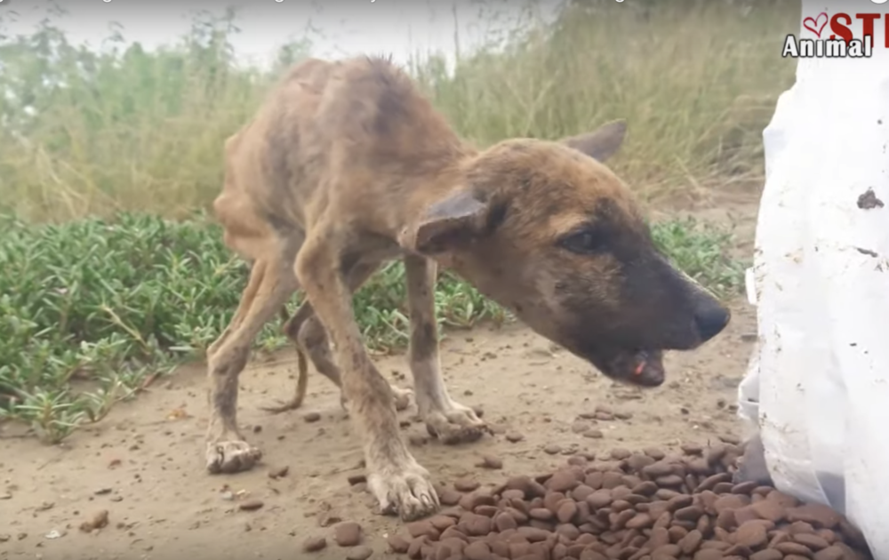 “Skin & Bones” Puppy Devours Food While Talking & Wagging His Tiny Tail