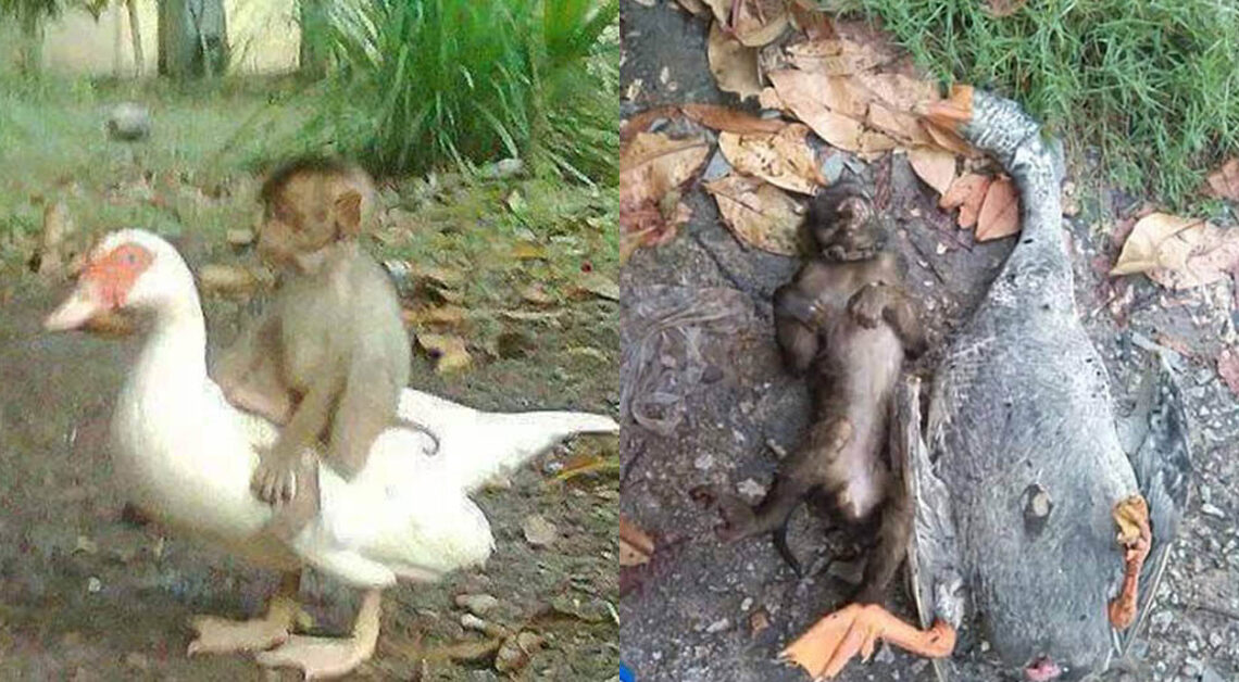 Monkey & Duck Both Died When One Tried To Save The Other Leaving Millions Heartbroken