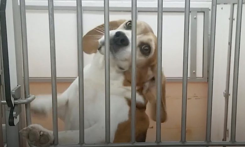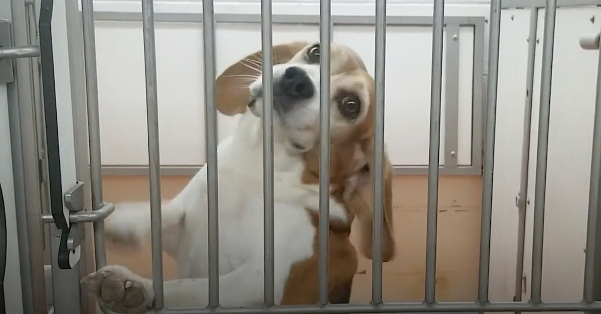 Beagle Sees The Sunshine For The First Time After Being Rescued From His Cage