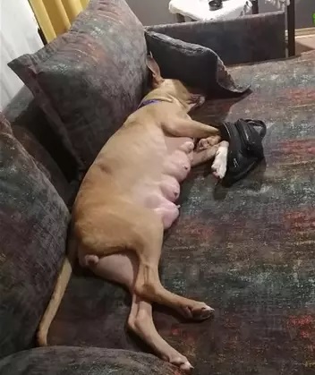 Meet Hera, a very sad with very big guts full of milk, and are ready to burst. A big chest like means that she had just given birth, and being so sad means that her newborn puppies were taken away from her, writes www.thepetneeds.com