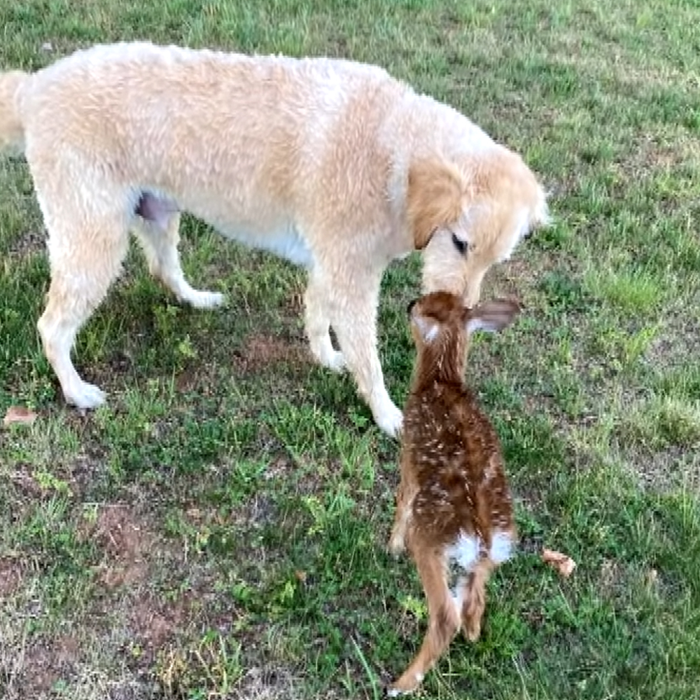 The following day, Harley’s owner noticed that his dog was restless. When he looked out of his front door, he saw that his dog had joined the fawn once again. It was a beautiful reunion as the fawn had stopped by to thank his savior and then walked away into the forest.