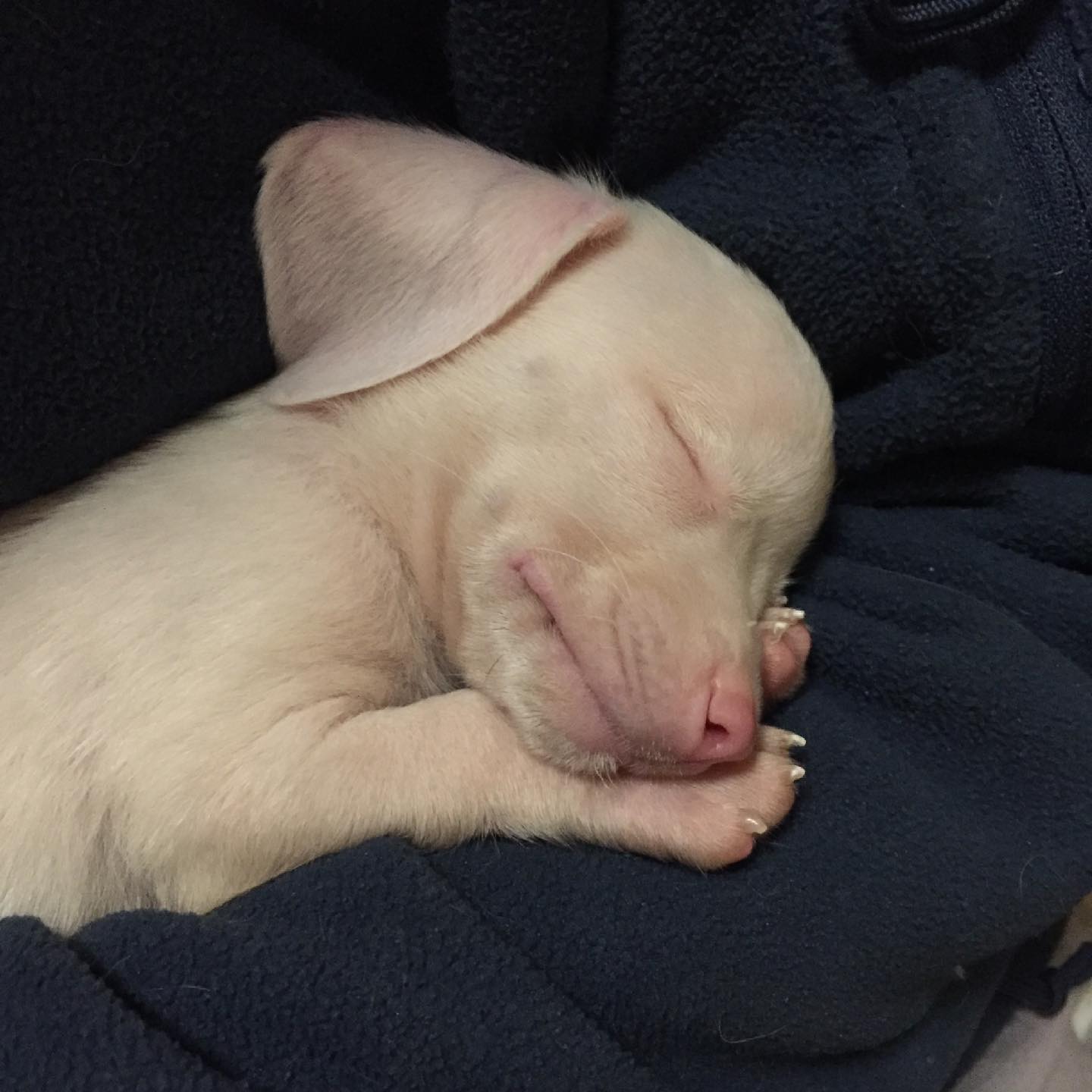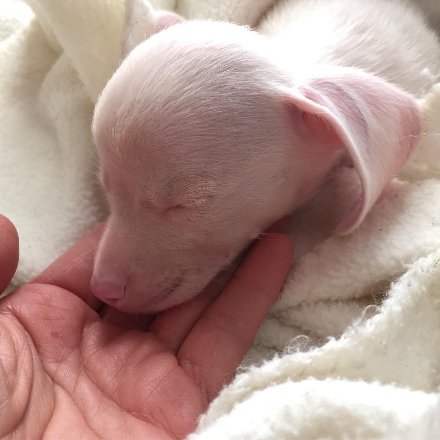 But the tiny pink puppy quickly warmed his way into their hearts: “After two months, we and he decided he was already home.”
