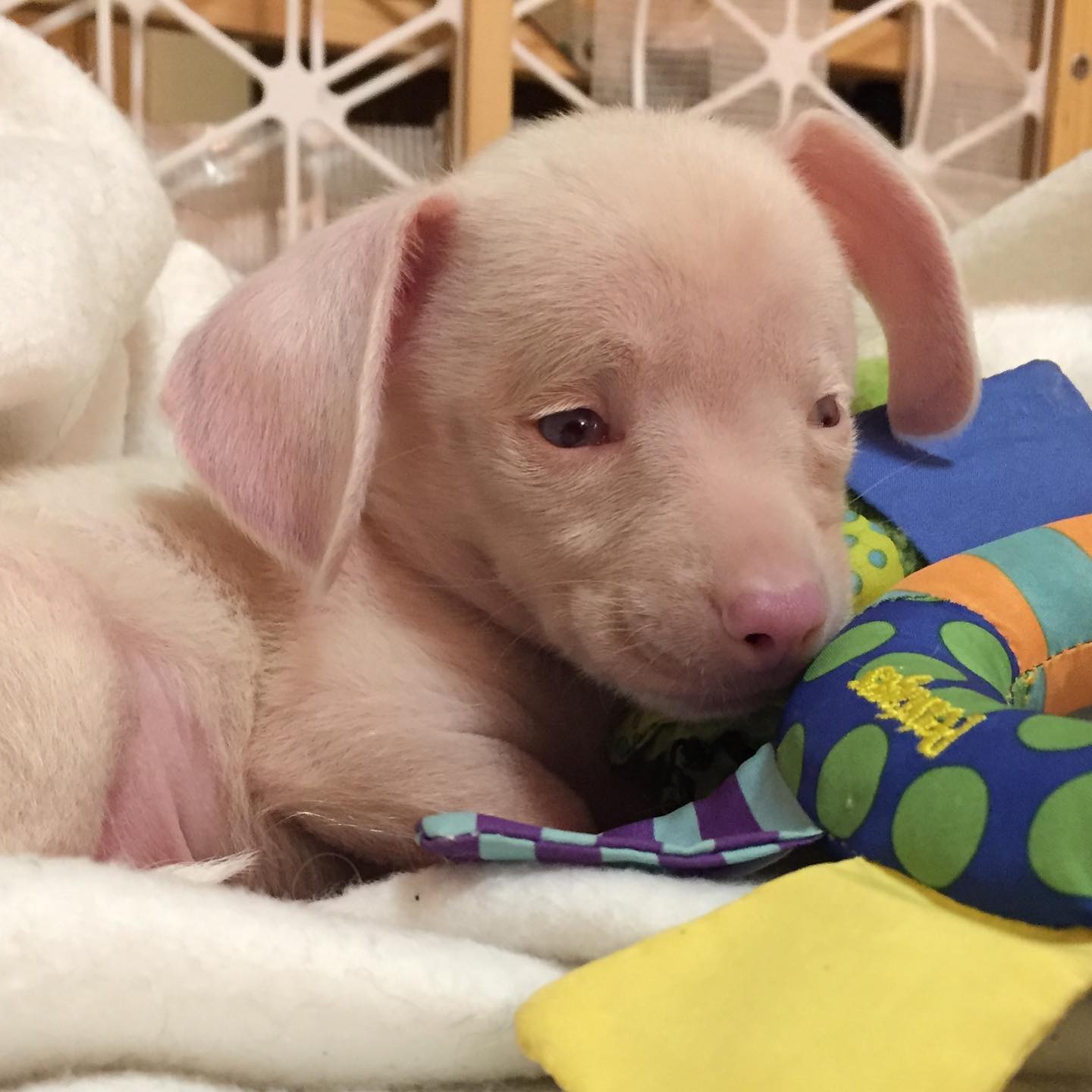 Pink Pup Born Blind And Deaf, Is Now An Inspiration For Kids With Differences