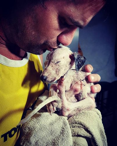 Meet Trappido! Danu Colombo got a report for help a poor puppy in severe condition. He is literally a bag of bones, he cannot stand for more than five seconds.