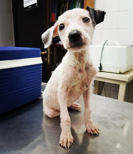 So small and with everything he has his life hangs by a thread. The positive thing that he eats he does not have vomiting but he does have a lot of diarrhea the day he arrived luckily later he cut it off.