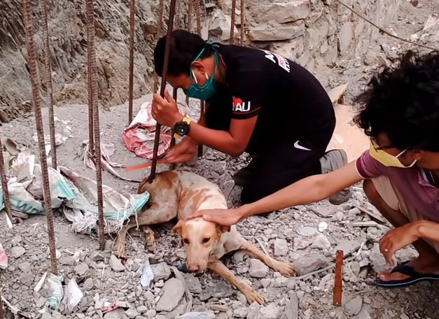 Neighbors spotted a beautiful dog laying by a rod in a construction site. When they came closer they saw to their horror that the rod had pierced through her thigh and she had stab her, writes www.viral4things.com
