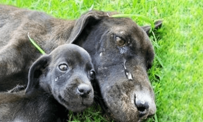 Exhausted Mother Dog Found Crying As She Could Not Look After Her Puppies