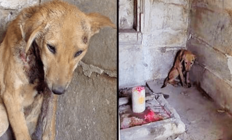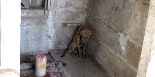 A call came in about an injured puppy who sought refuge in a temple. He was curled up in a corner, praying for relief from his pain. The solemn puppy was clearly distressed, and his eyes were filled with sadness.