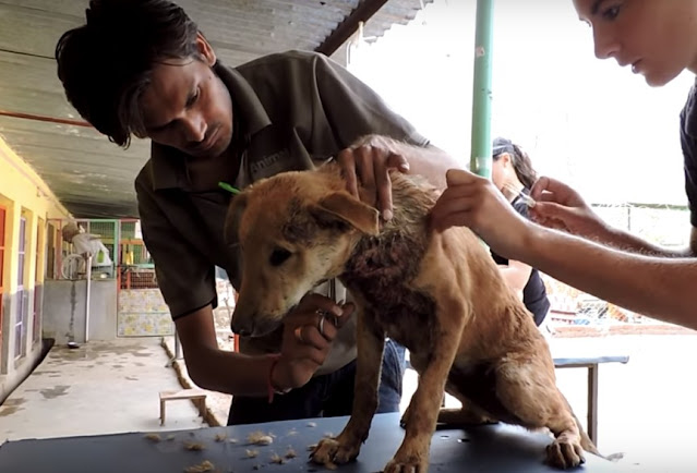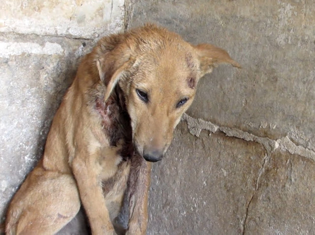 The Puppy was covered in wounds. Were they inflicted on purpose? Was he hit by a car by chance?