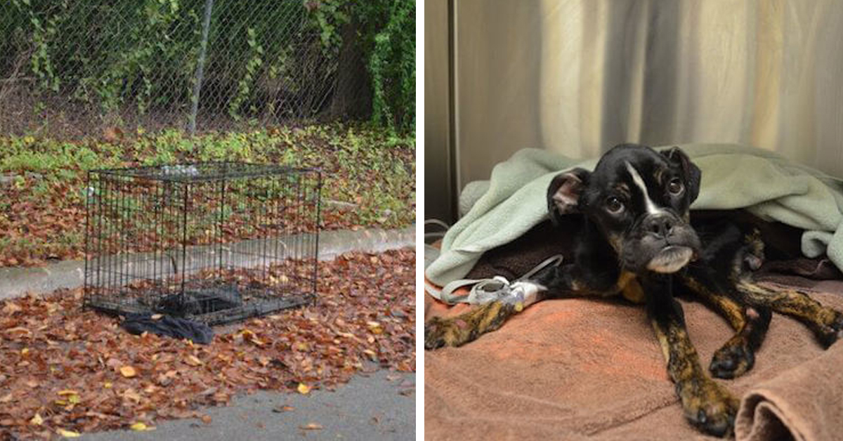 Police Officer Finds Puppy On The Brink Of Death Dumped In Its Crate