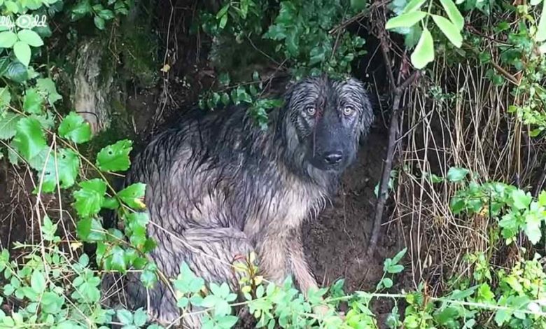 When the volunteers approached, the dog ran away, off the road and into the bushes. The dog was scared and began showing signs of aggression toward the rescuers as they approached it.