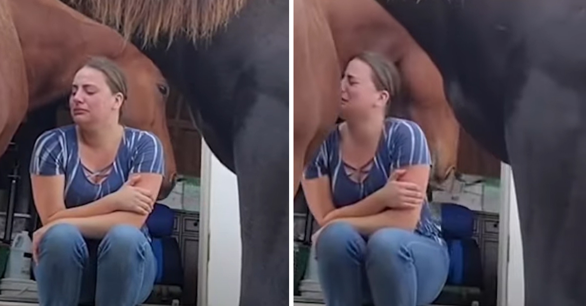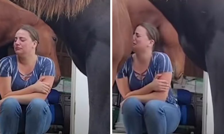 Heartwarming Scene When Horse Tries To Comfort Its Caretaker By Hugging Her