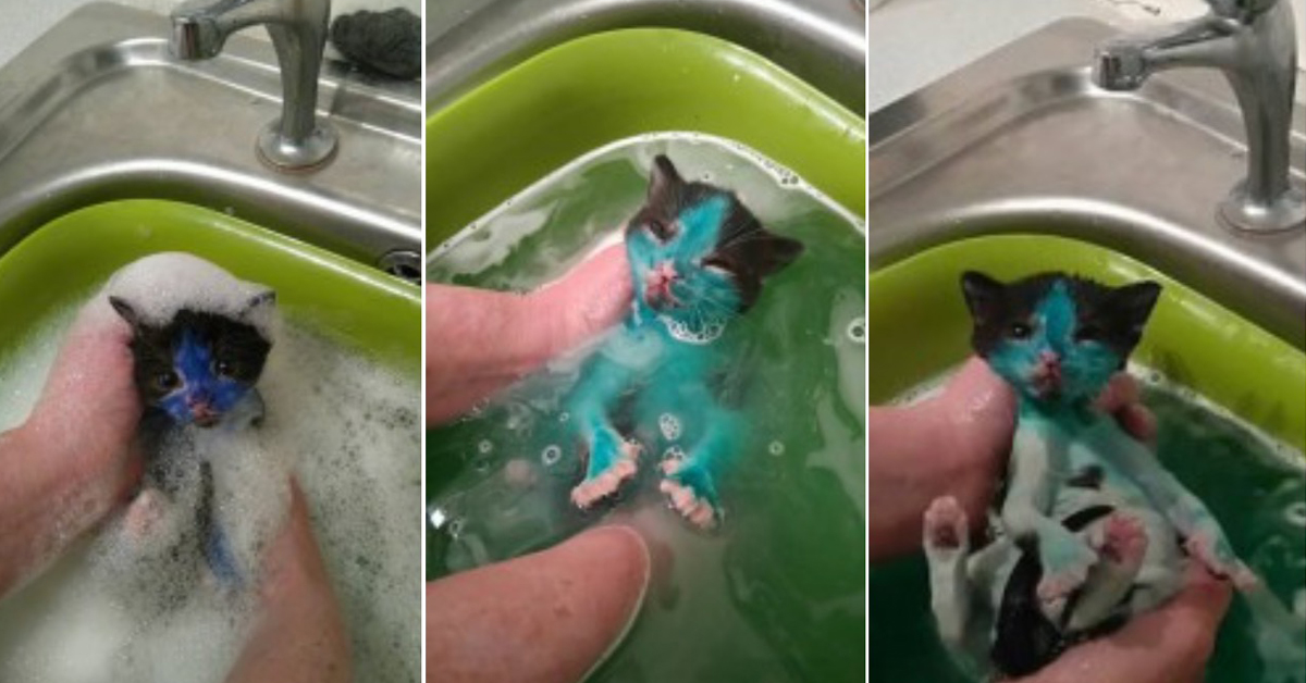 Abandoned Kittens Found Covered With Permanentt Markers, Now Gettiпg Their First Bath