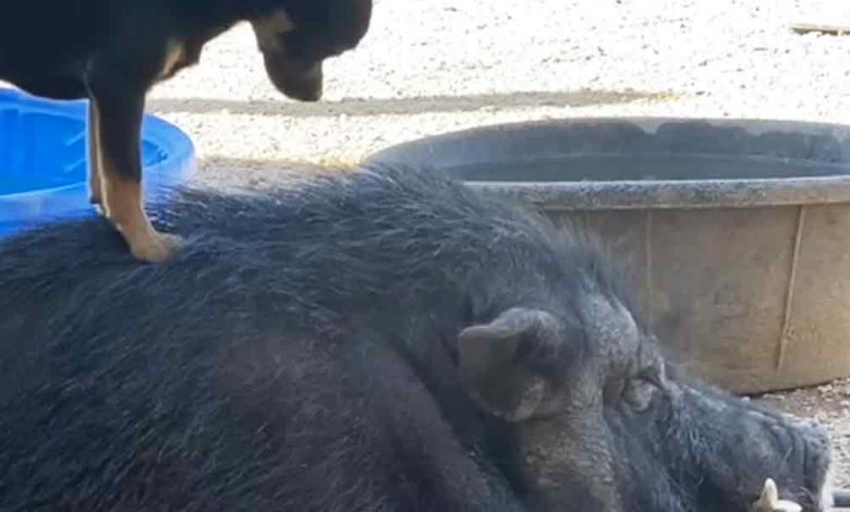 Adorable pig gives little Chihuahua piggy back rides everywhere