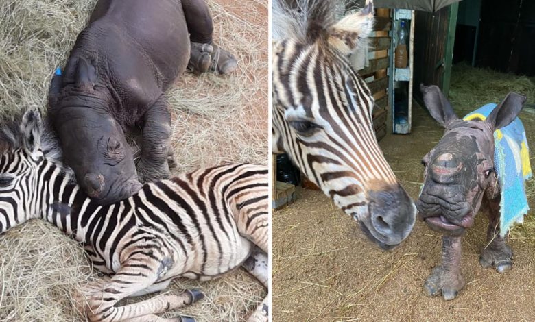 Baby Zebra And An Orphaned Baby Rhino Become Best Friends Ever At Sanctuary