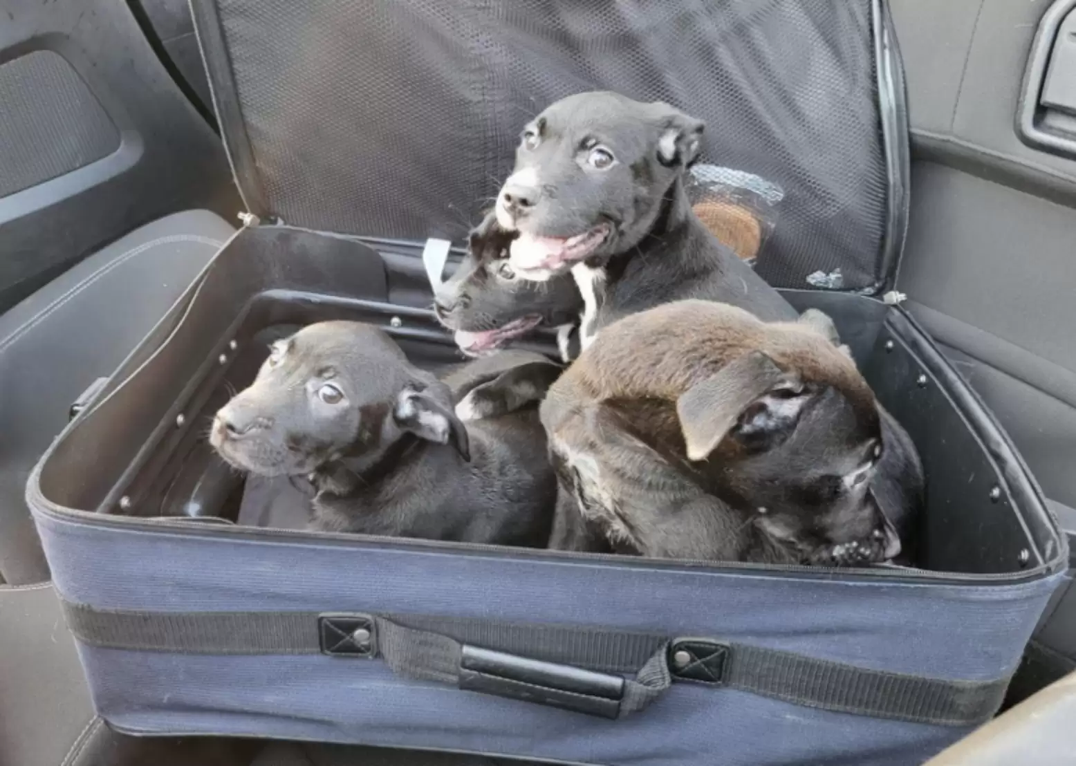 The couple slowed their car, and that’s when they saw it — a tiny nose just barely poking out from an unzipped corner of the bag. They quickly opened the suitcase and were shocked to find four friendly puppies inside, writes thedodo.