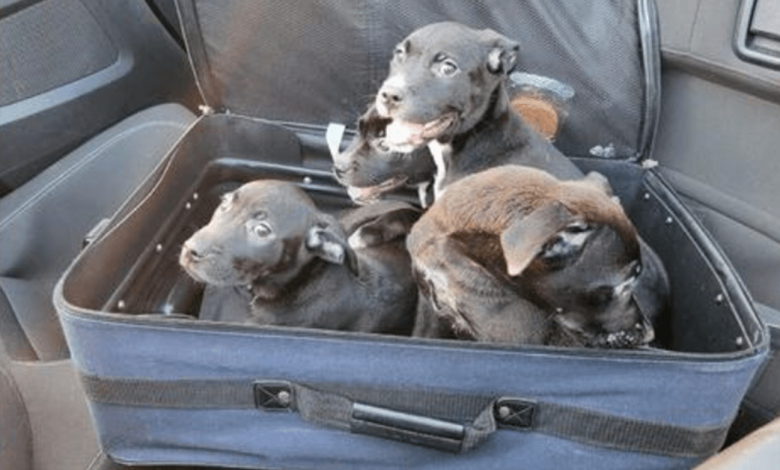 Couple Spots A Suitcase Wriggling On The Road And Realizes It Is Full Of Puppies