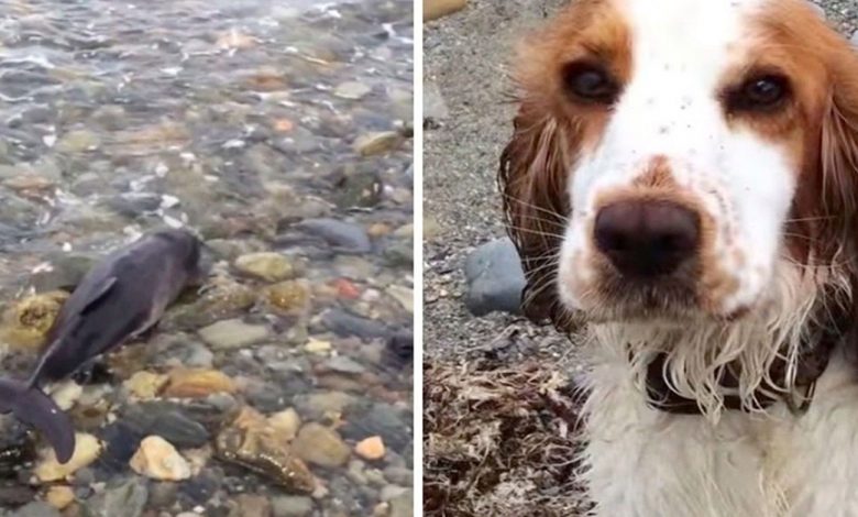 Dog Finds Baby Dolphin Stranded On The Shore And Saves His Life