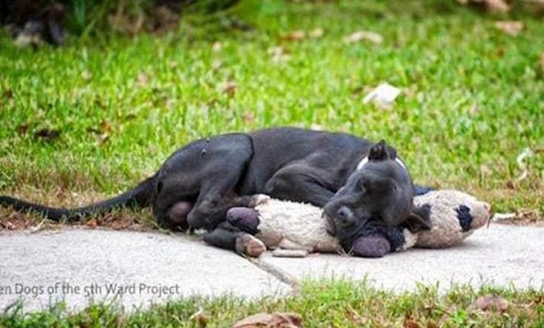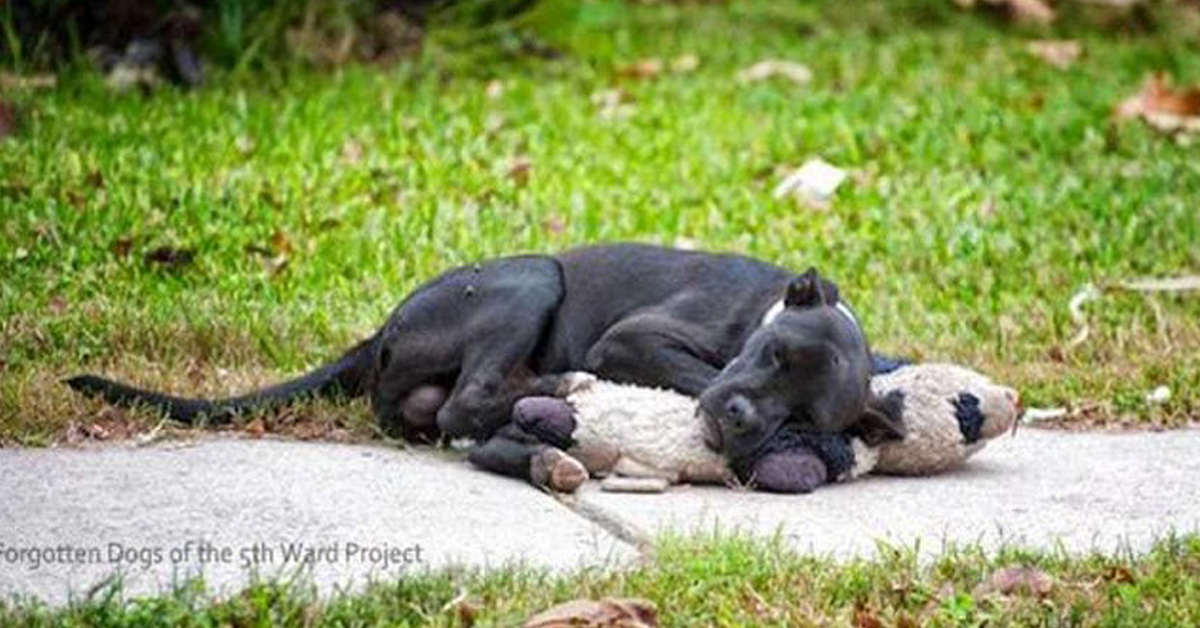 Stray Dog Found Sleeping With Stuffed Animal And Nobody Cares