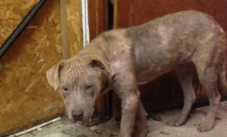 The fur gradually began to grow back, turning the bald dog into a charming beauty
