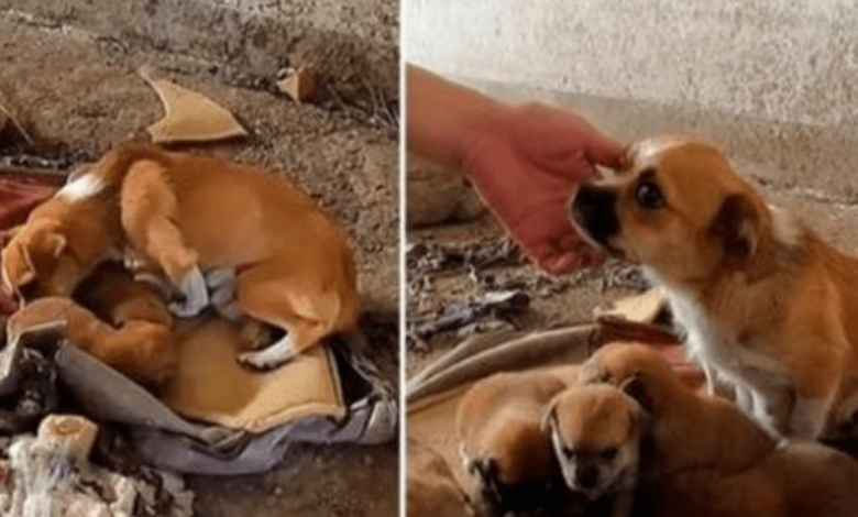 Mother dog and her children struggled to survive in an abandoned factory