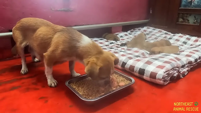 They took them to a sanctuary, the mom pet dog was extremely starving, they give her food so she feed her pups. Regrettably, the boy with inadequate health and wellness did not endure.