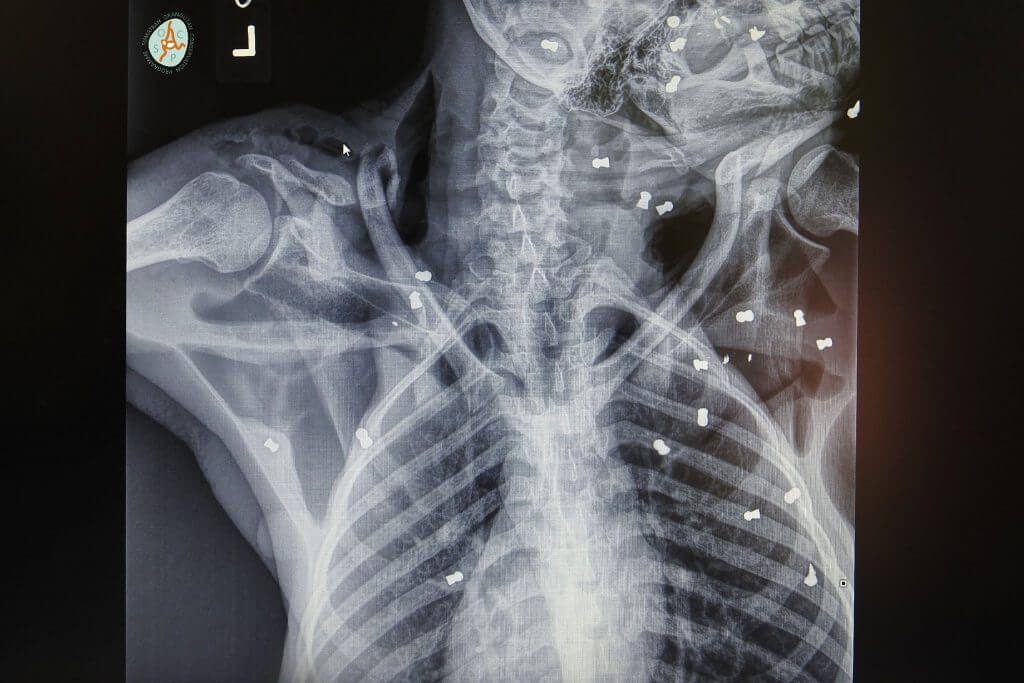 X-rays showed veterinarians the true horror of the mother orangutan’s injuries. She had been sprayed with 74 pellets throughout her body.