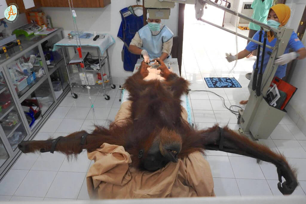 It was clear that the orangutan had been inflicted by objects intended to hurt or kill. Her fingers, legs and arms were covered in injuries.
