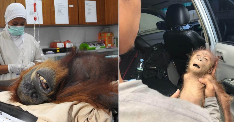 Unfortunately, the orangutan’s baby died in transit to the medical facility. It died from a combination of malnutrition and sustained injuries.