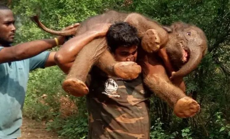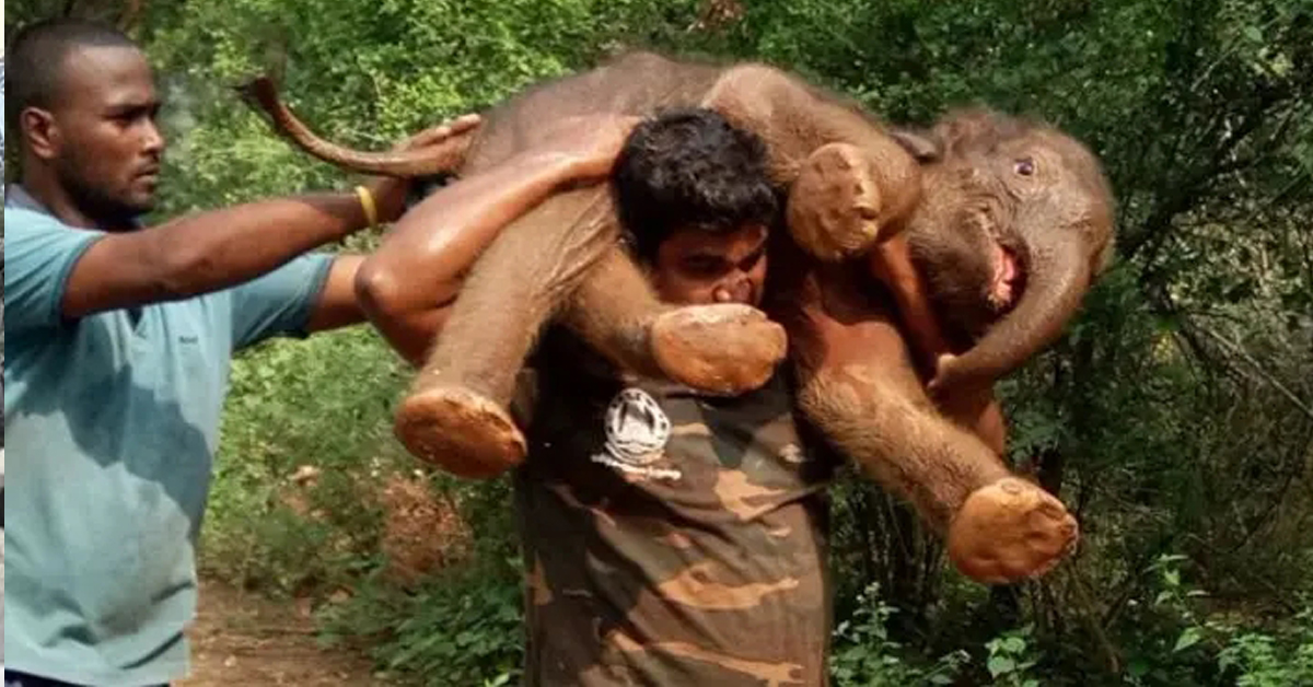 Forest Guard From India Rescues Baby Elephant Who Fell In A Ditch