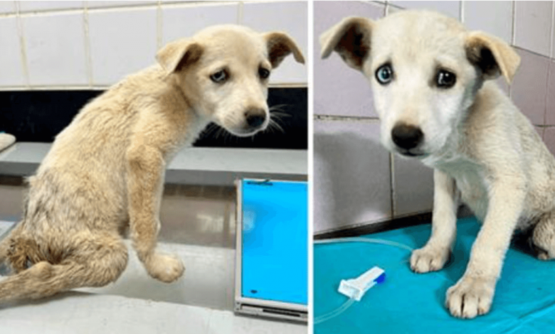 Although he was in a miserable condition, the poor puppy was very beautiful and has special one blue eye, so they called her blue.