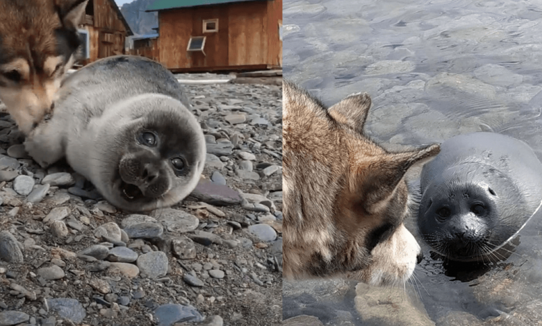 The dog helped out a baby seal thinking it was a puppy