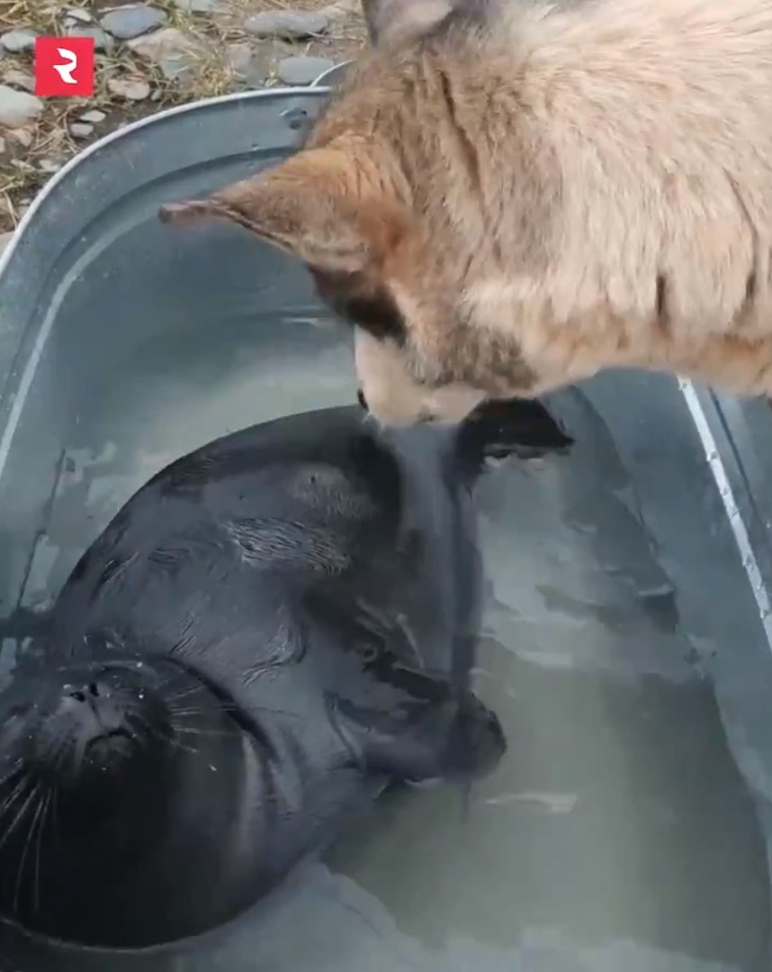 People who live and work as meteorologists on Lake Baikal found a small seal on the shore, which was already exhausted and practically did not move. The baby was taken to the station where they began to nurse. The dog, named Nika, also came to the rescue. People think that it took the baby for a puppy, it began to lick it and take care of it. A lot of affection and love gave its results and the seal began to recover.