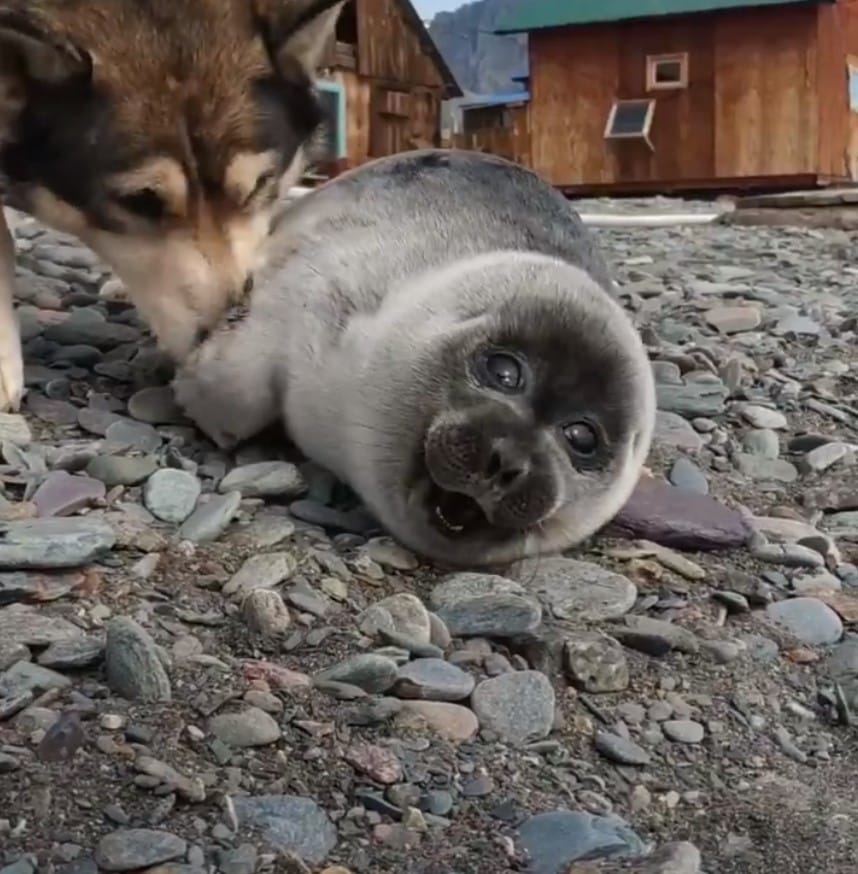Today, we will share an incredible story about how a dog helped bring out a baby seal on Lake Baikal, deciding that it was a puppy, writes positive-info.