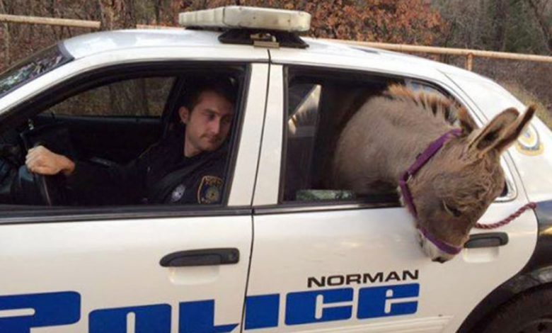 Police Officer Saves Donkey From busy Highway, Moves It Inside Patrol Car