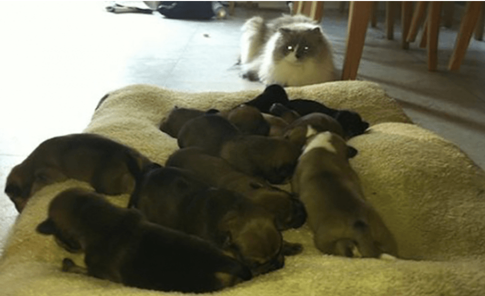 The next morning, Blue had given birth to 11 perfectly healthy babies. Bryan’s cat, taken aback at first, finally found the friends he was dreaming of in them.