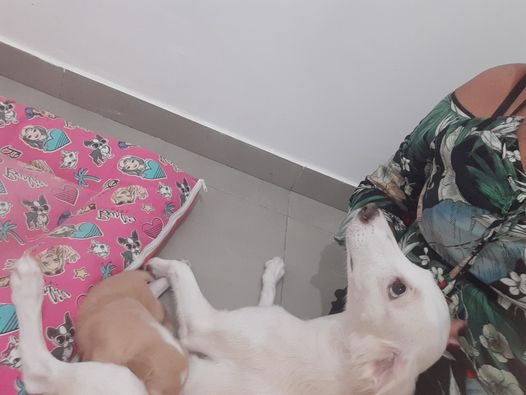 Nearly ready for giving birth and as she was so skinny, Vets have to bring her to hospital just in case there is any special need during her labour. Luckily everything went well, she gave birth to 3 puppies.