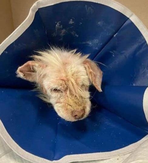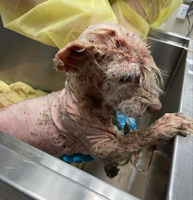 When she was rescued, she weighed only four kilograms, was infested with fleas to the case where they had never seen one before, had severe scabies due to these parasites, was missing half an ear, and, worst of all, had a shot in one of his arms.