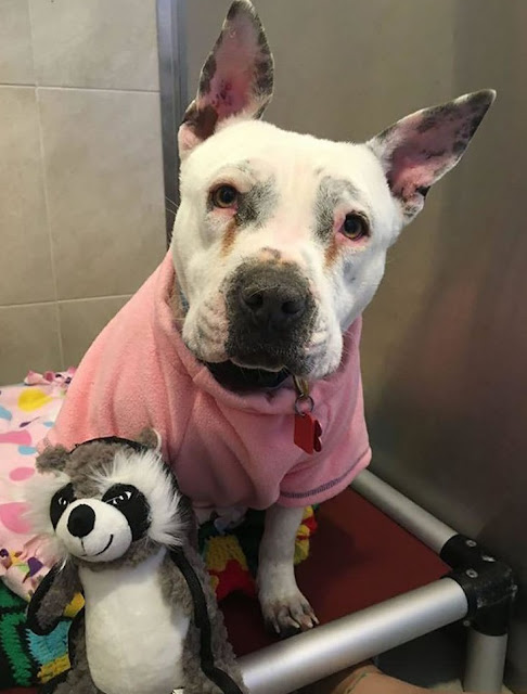 So, the organization took all the dog to treat them as the home had no owner! Stell said that Violet was a little bit shy, and extremely scared when she was found!