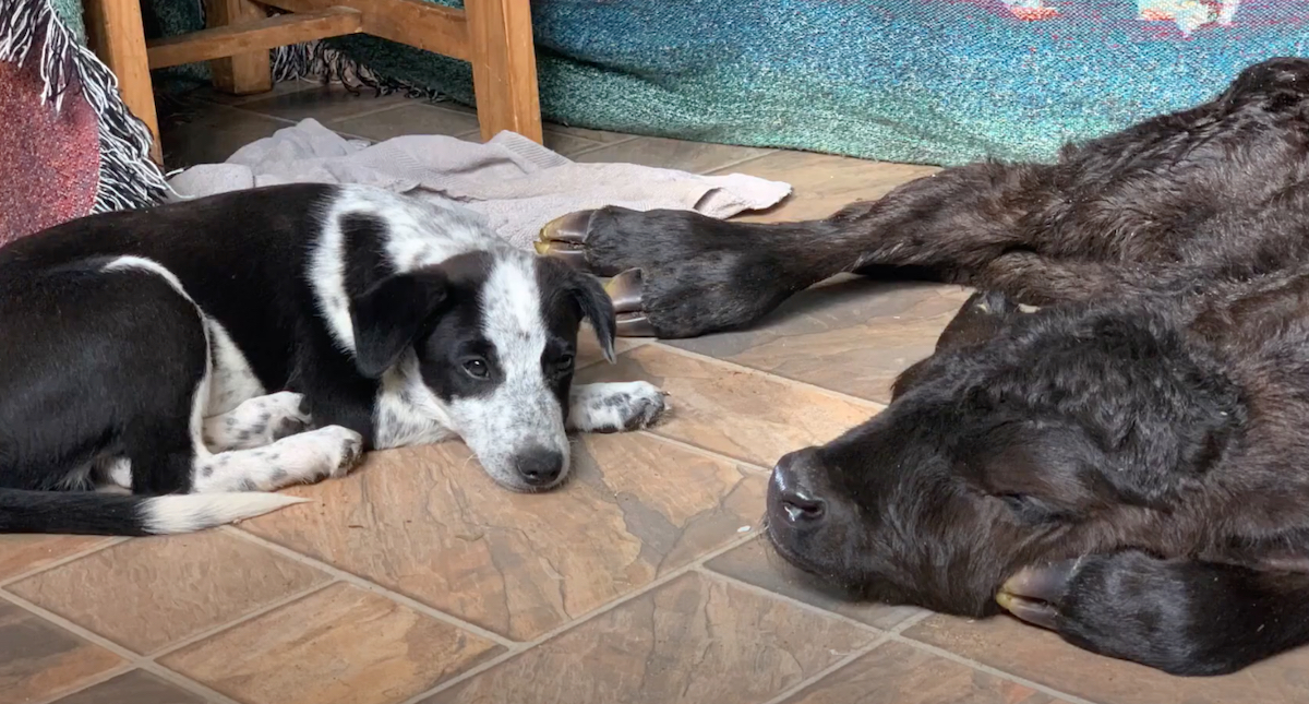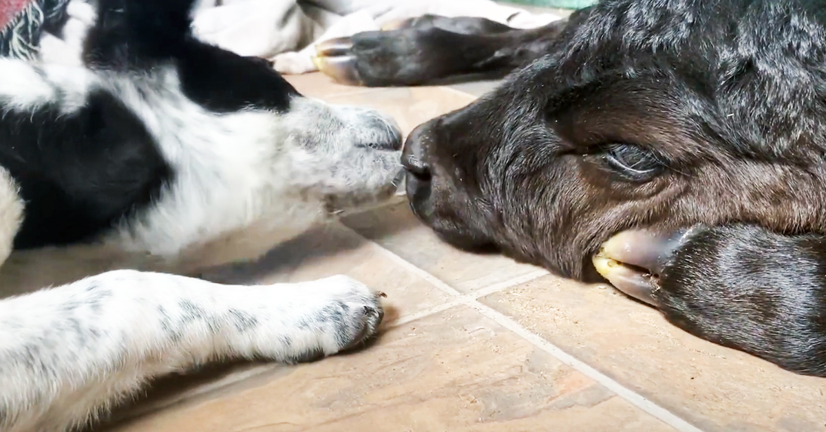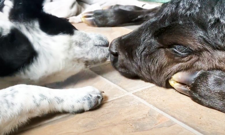 Heroic Puppy Comforts Helpless Newborn Calf In Freezing Cold Weather