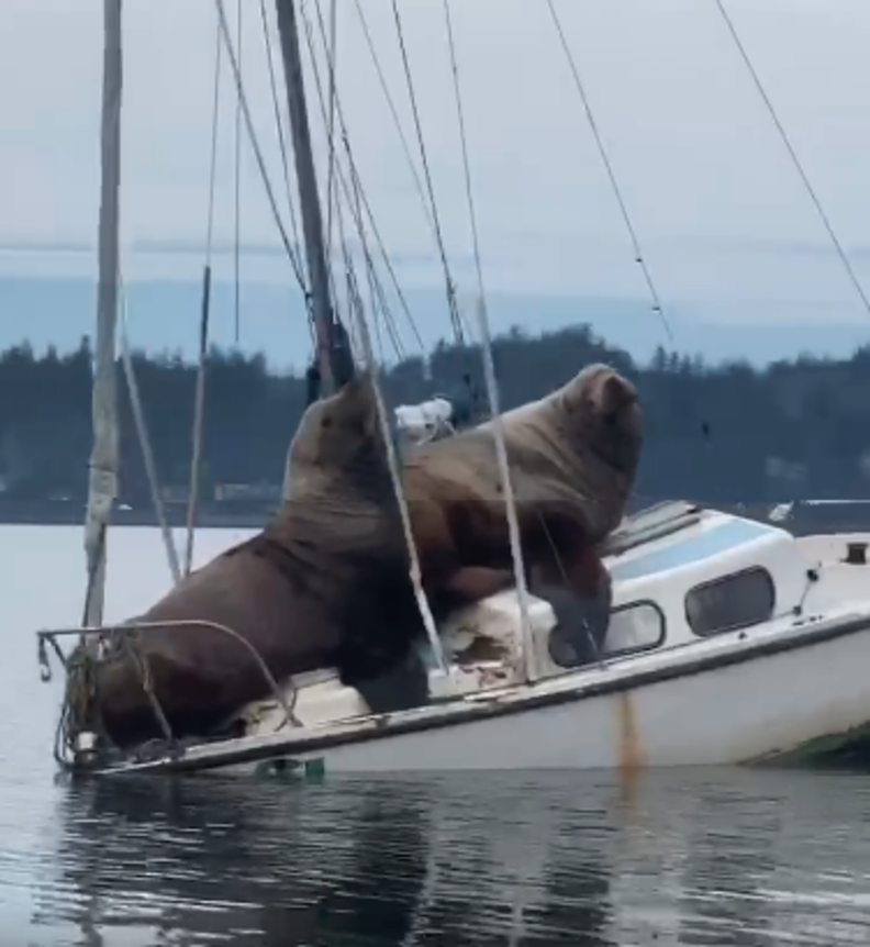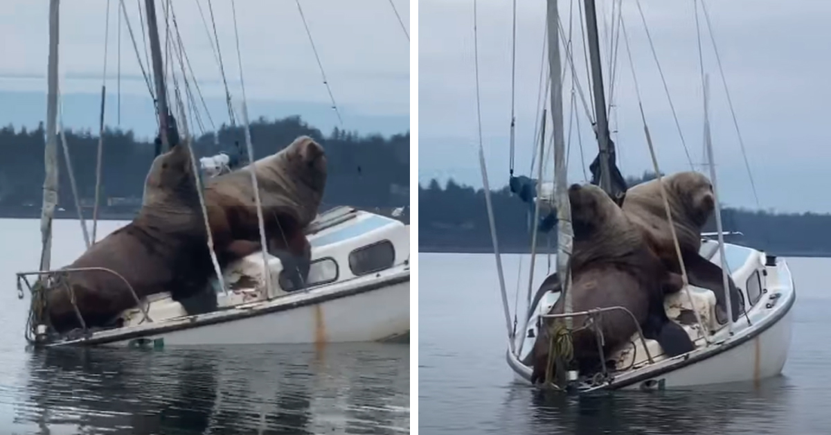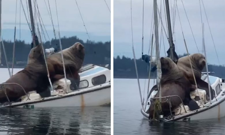 Two Huge Sea Lions Occupy Someone’s Boat And Then Sink it