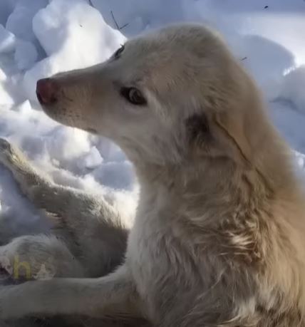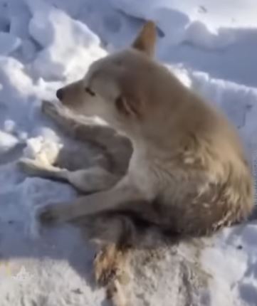 Embracing Warmth and Blissful Tears as a Parasite-Infested Dog Finds Refuge from Days in the Cold Snow