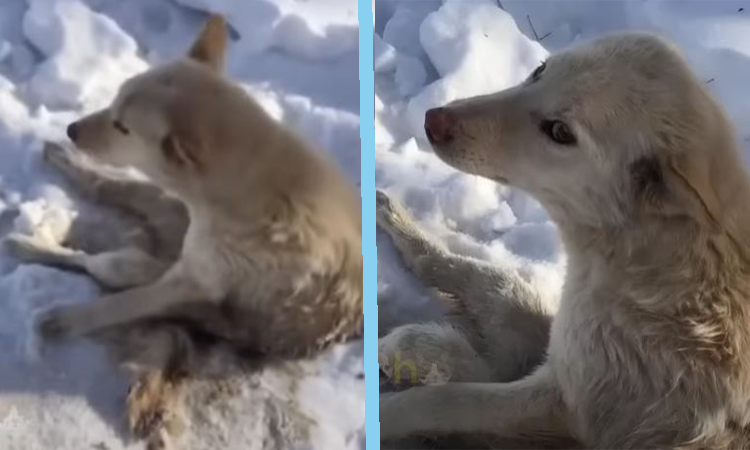 Tears of a Dog That Collapsed in The Cold Snow for Days, Being Attacked by Parasites